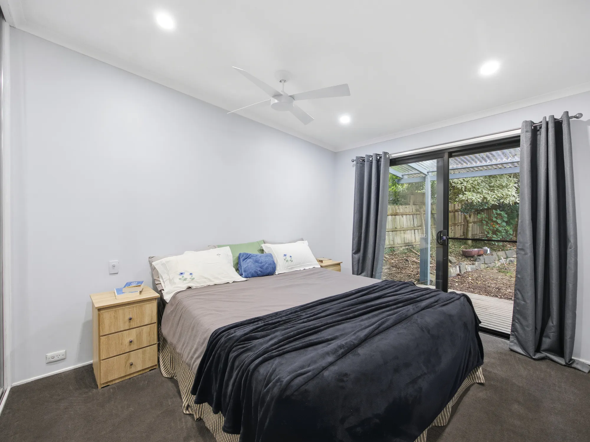 Inside, the home offers a light-filled open plan living area enhanced by polished Victorian Ash flooring, flowing seamlessly into a stylish kitchen featuring a long breakfast bar, soft-close cabinetry and near-new appliances including a dishwasher, wall oven and hot plates. A separate dining area enjoys lovely garden views, adding to the home's relaxed appeal.